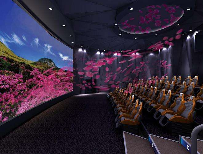 當觀眾在看立體電影時,順著影視內容的變化,可實時感受到風暴、雷電、下雨、撞擊、噴灑水霧、拍腿等身邊所發生與立體影象對應的事件,5D特效影院的座椅是具有噴水、噴氣、振動、掃腿等功能。環境模擬仿真是指影院內安裝有下雪、下雨、閃電、煙霧等特效設備,營造一種與影片內容相一致的環境,身臨其境,驚險刺激的效果。在運動中感受視覺沖擊力。相比較于其他類型影院,具有主題突出、科技含量高、效果逼真、娛樂性強等特點和優勢。